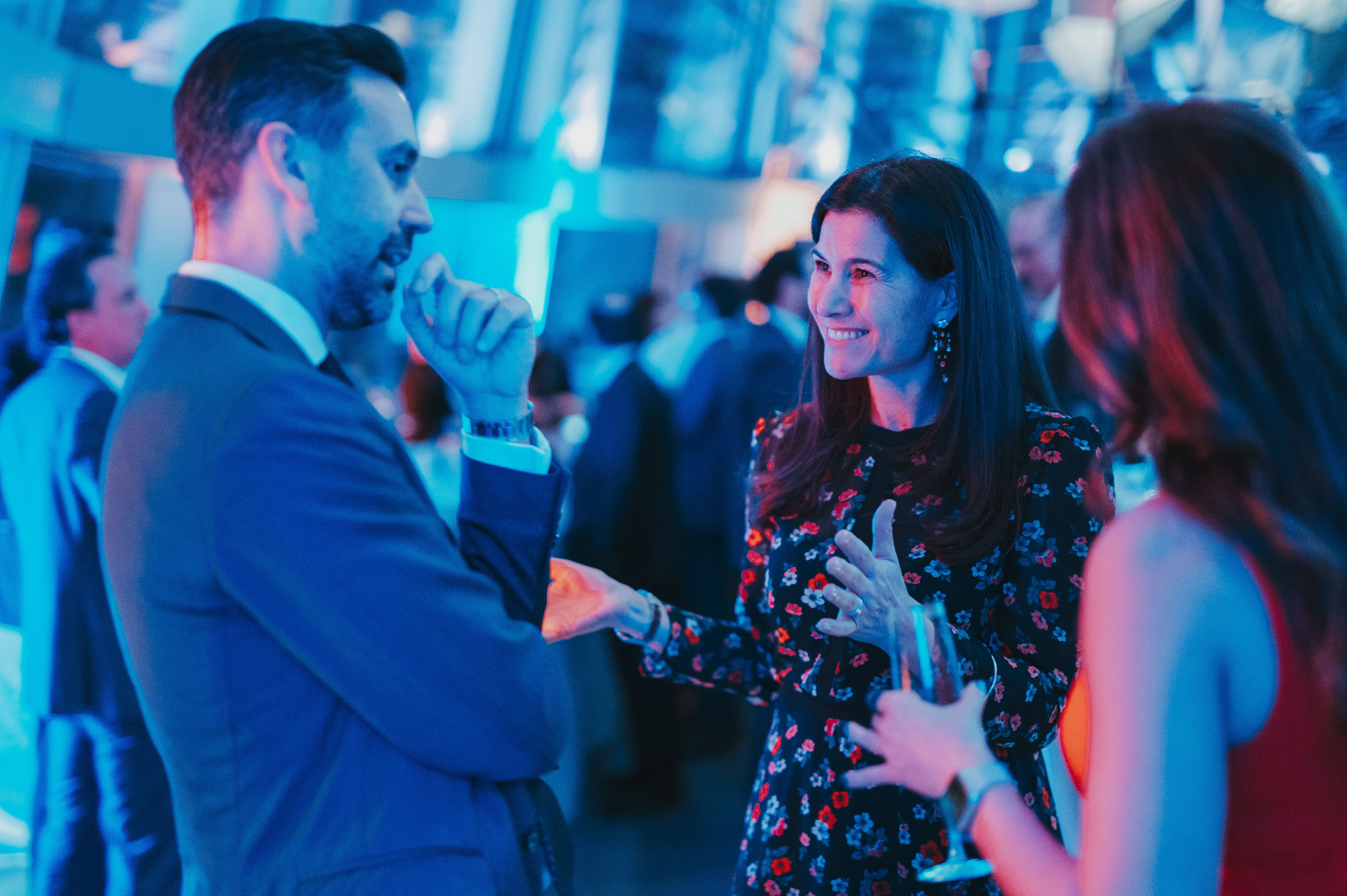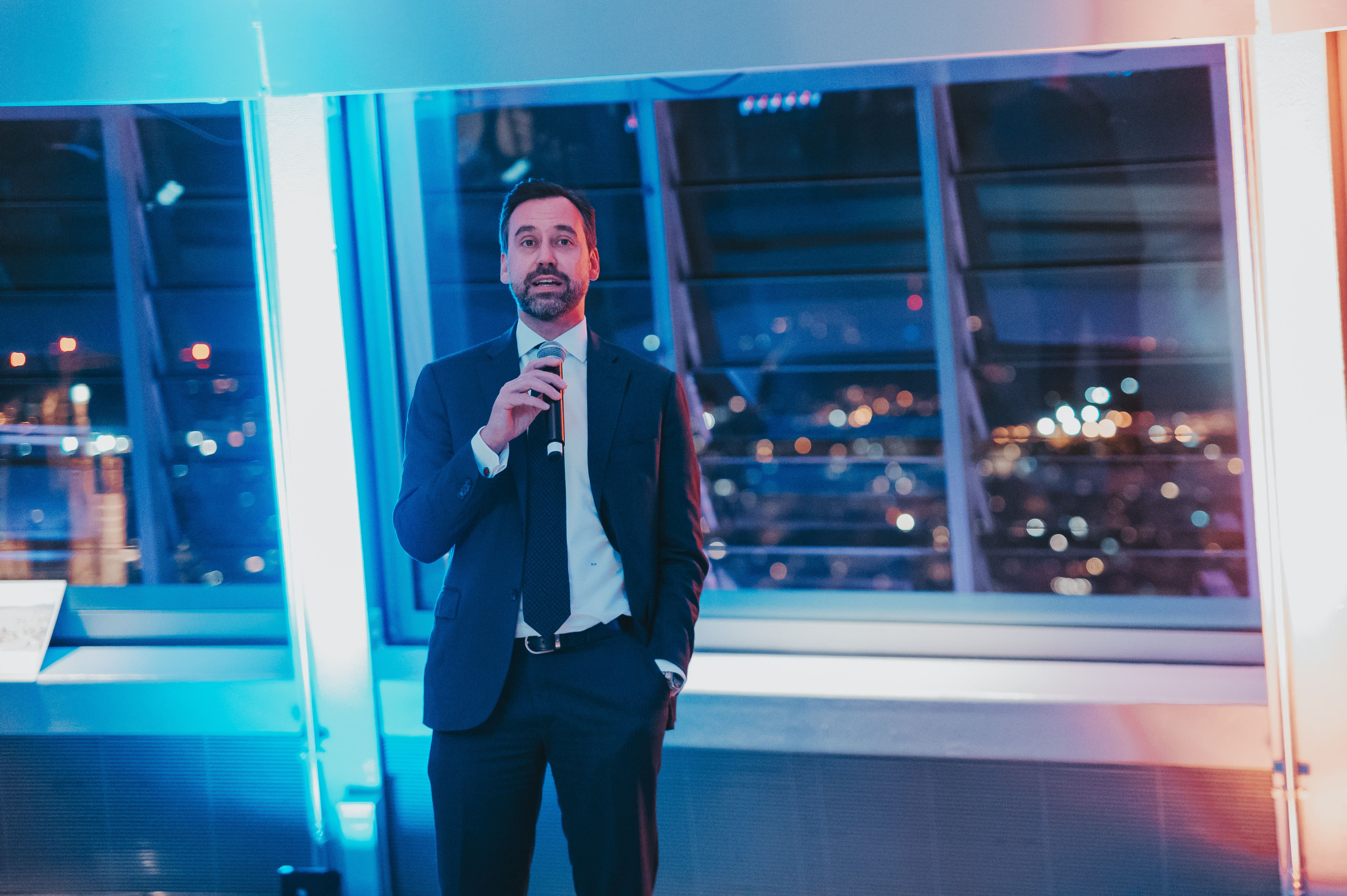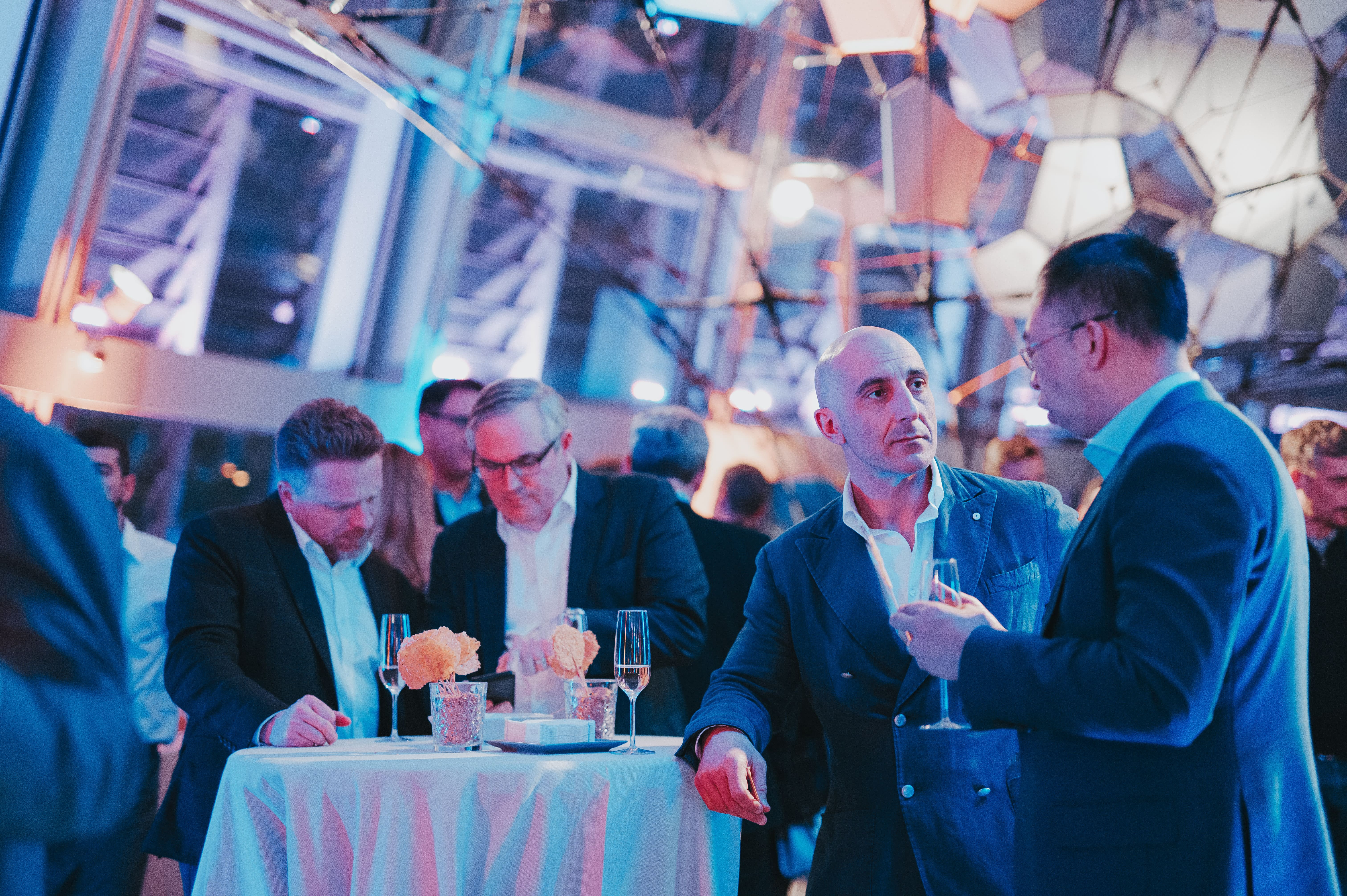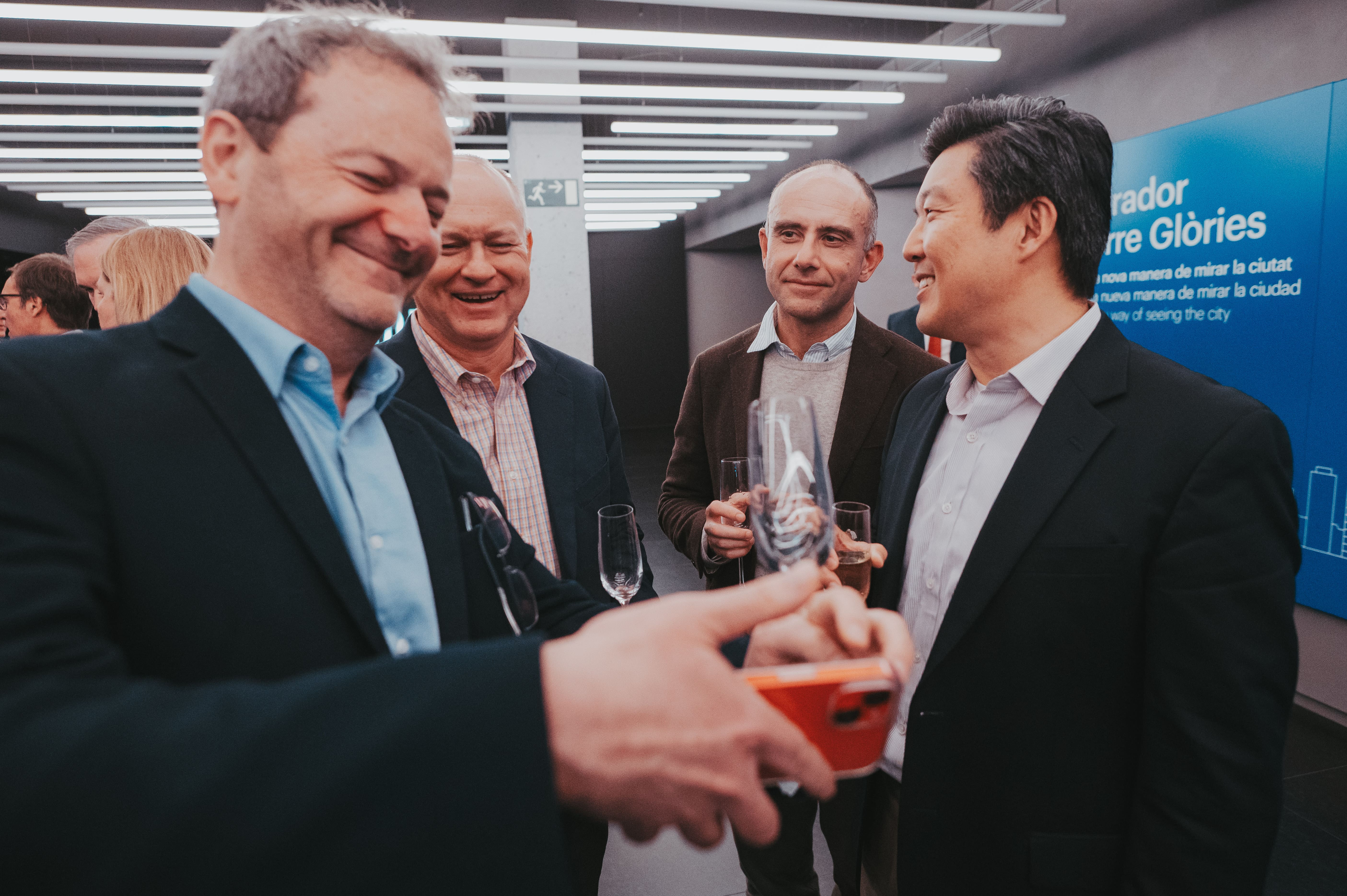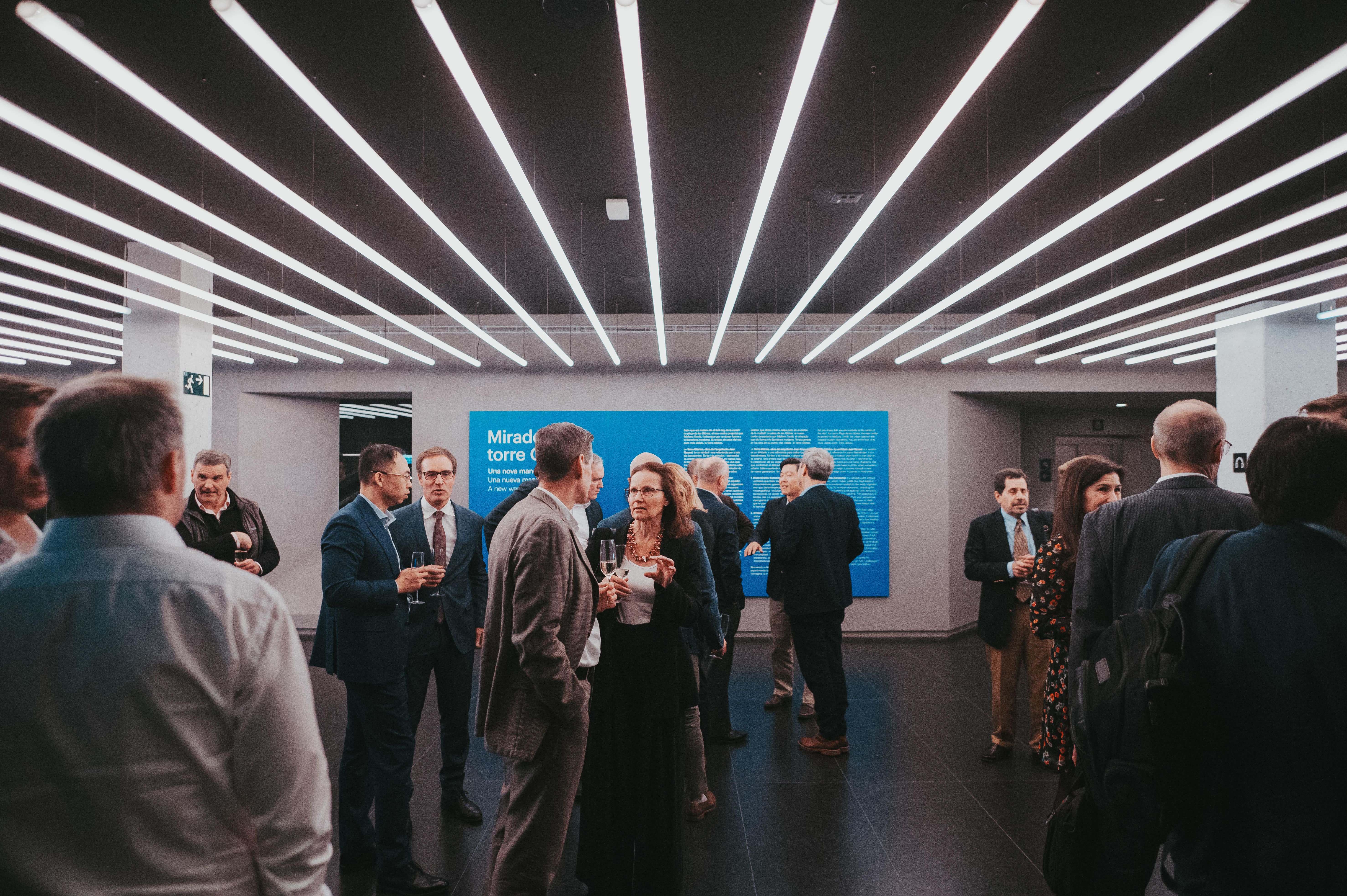After concluding remarks from Sisvel President Mattia Fogliacco, the group was joined by more guests. Everyone enjoyed a glass or two of cava before catching the lift to the top of the 130-metre Gloriés tower. Once there, they enjoyed fabulous views over Barcelona as the late dusk gave way to the night and what seemed like a million lights illuminated the dark.